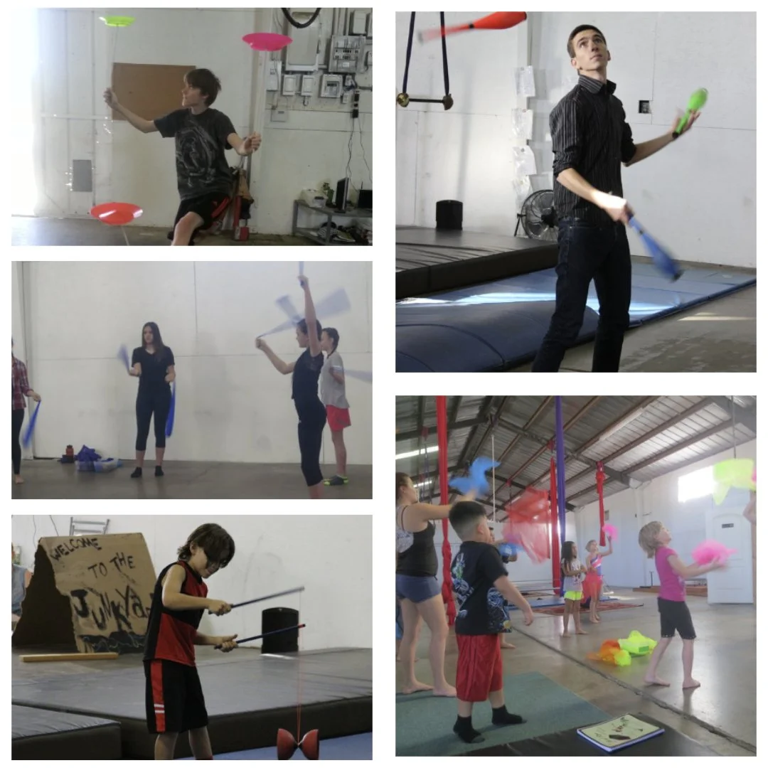 Kinder Circus(~3-6): This class is for young children who are ready to participate without their parents. These students will begin to explore tumbling, stretching, juggling, plate spinning, globe walking, tightwire, trapeze, and sling.