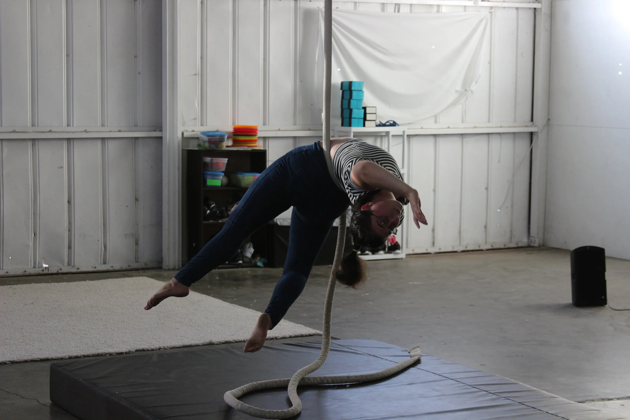 Aerial: We offer aerial technique classes in classes in aerial silks, trapeze, lyra, sling, rope, straps, and more. These group classes are limited to 4 students and are personalized to each student's choice of apparatus and where they are in our curriculum.